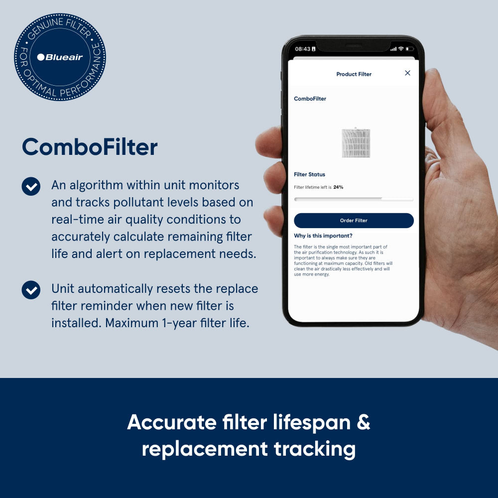 مجموعة فلاتر BlueAir DustMagnet ComboFilter هي مجموعة فلاتر بديلة متخصصة مصممة لأجهزة تنقية الهواء من سلسلة BlueAir DustMagnet 5200، بما في ذلك طرازات مثل 5210i و5240i. تتضمن المجموعة فلترًا أوليًا، وفلترًا للجسيمات، وفلترًا للكربون النشط، تعمل جميعها معًا لإزالة الغبار والمواد المسببة للحساسية ووبر الحيوانات الأليفة وحبوب اللقاح والدخان والروائح من الهواء بكفاءة عالية. يستخدم فلتر الجسيمات تقنية HEPASilent™، مما يوفر كفاءة ترشيح عالية مع الحفاظ على تشغيل هادئ. يستهدف فلتر الكربون النشط الروائح والمركبات العضوية المتطايرة، مما يساعد على خلق بيئة داخلية أنظف وأكثر انتعاشًا. صُمم فلتر ComboFilter لسهولة استبداله، حيث يحتوي جهاز تنقية الهواء DustMagnet على مؤشر ذكي لاستبدال الفلتر يُنبه المستخدمين عند حلول موعد تغييره. صُممت هذه الفلاتر لتدوم طويلًا، مما يوفر الراحة وجودة هواء ثابتة. باستخدام فلتر BlueAir DustMagnet ComboFilter، يضمن المستخدمون الحفاظ على أداء أجهزة تنقية الهواء الخاصة بهم في ذروتها، مما يوفر هواءً أنظف وحماية أفضل ضد الملوثات المحمولة جواً.