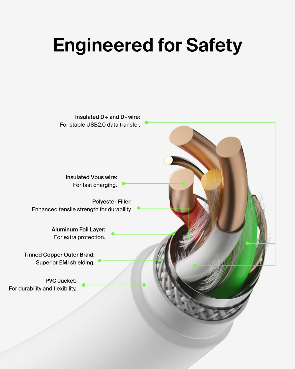 حافظ على شحن أجهزتك ومزامنة بياناتها واتصالها باستخدام كابلات موثوقة يمكنك استخدامها في المنزل والسيارة والمكتب. صُممت هذه الكابلات من نوع USB-C لتدوم طويلًا، وهي مُختبرة لتحمّل أكثر من 25000 انحناءة، وتعمل مع أي منفذ USB-C قياسي. كما أنها حاصلة على شهادة USB-IF لضمان أداء آمن وسلس مع جميع أجهزتك.
