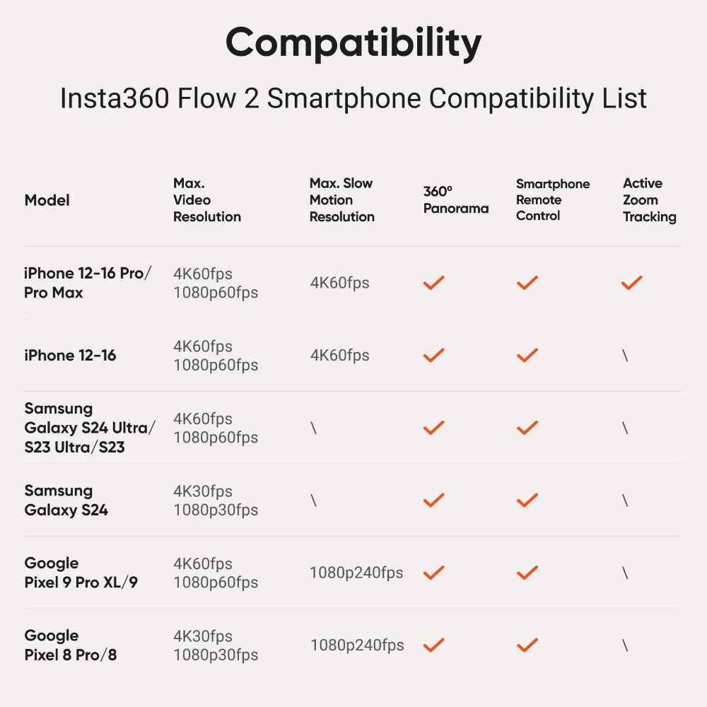 يُعدّ Flow 2 أداةً أساسيةً لمنشئي المحتوى. فهو حلّ سلس لالتقاط كل لحظة، أينما كنت. استمتع بإنشاء المزيد من اللقطات بسهولة مع حزمة AI Tracker التي تأتي مع Insta360 AI Tracker، والتي تتيح التتبع الأصلي في أي هاتف. بالإضافة إلى ذلك، يتميز AI Tracker بضوء كاشف مدمج مع تسعة تأثيرات إضاءة مختلفة للتصوير في الإضاءة المنخفضة. بحجم الجيب وجاهز للتصوير في أي وقت وأي مكان. مع جميع أدواتك في جهاز واحد، لن تحتاج إلى أي معدات إضافية. وبفضل خاصية النشر السريع بخطوة واحدة، والاقتران السهل بتقنية NFC، ما عليك سوى تثبيت هاتفك، وفتح الجهاز، وسيكون Flow 2 جاهزًا للانطلاق. بفضل تصميمها المتكامل وتقنية Deep Track 4.0، تحافظ كاميرا Flow 2 على توسيط مثالي لأهدافك في كل لقطة. التقط صورًا للأنشطة اليومية، والأطفال، والحيوانات الأليفة، ومغامرات السفر، وغيرها الكثير، بسرعة وسلاسة لم يسبق لها مثيل. هل ترغب في التقاط صورة سيلفي أم صورة جماعية؟ استخدم عصا السيلفي لتصوير أسهل وأكثر مرونة. اجمع فريقك بأكمله في الصورة أو غيّر زاوية التصوير في مقاطعك باستخدام زوايا تصوير عالية ومنخفضة. بالإضافة إلى ذلك، يتميز Flow 2 بحامل ثلاثي القوائم مدمج ومتين يعزز بشكل كبير الثبات والمتانة للتصوير في الهواء الطلق. بفضل العديد من الميزات الإضافية مثل جهاز التلقين، وشبكة تأطير احترافية، والتحكم عن بعد بساعة أبل والهاتف الذكي، والتأثيرات السينمائية المدمجة، والتحرير بالذكاء الاصطناعي، والتحكم الذكي بالعجلة، والملحقات المذهلة التي يمكنك إقرانها مع Flow 2، فإن هذا المثبت هو مصورك الشخصي ومصور الفيديو الخاص بك في أي وقت وفي أي مكان.