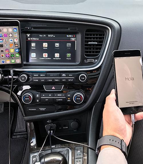 يمكن لركاب المقاعد الأمامية والخلفية مواصلة استخدام أجهزتهم أثناء الشحن باستخدام شاحن السيارة المشترك من Kanex