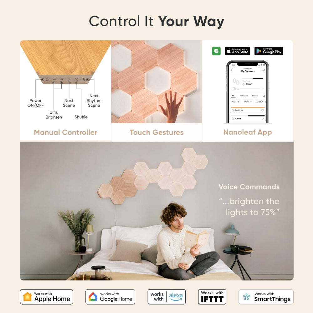 تقدم Nanoleaf Shapes مجموعة جديدة كلياً من الأشكال المتصلة ببعضها، مما يتيح إمكانيات تصميم وتخصيص لا حدود لها. تُضفي ألواح الإضاءة LED المعيارية هذه لمسة جمالية على مساحتك من خلال تجارب متعددة الحواس، مثل التفاعل باللمس، ومزامنة الموسيقى في الوقت الفعلي، وعكس الشاشة، وغيرها. يجمع هذا التصميم بين التكنولوجيا الذكية والأناقة الفائقة، ليفتح أمامك آفاقاً واسعة للتصميم والإبداع والابتكار. اصنع تناسقاً بديعاً في أي غرفة، أو انطلق في رحلة تجريدية، فالخيار لك.