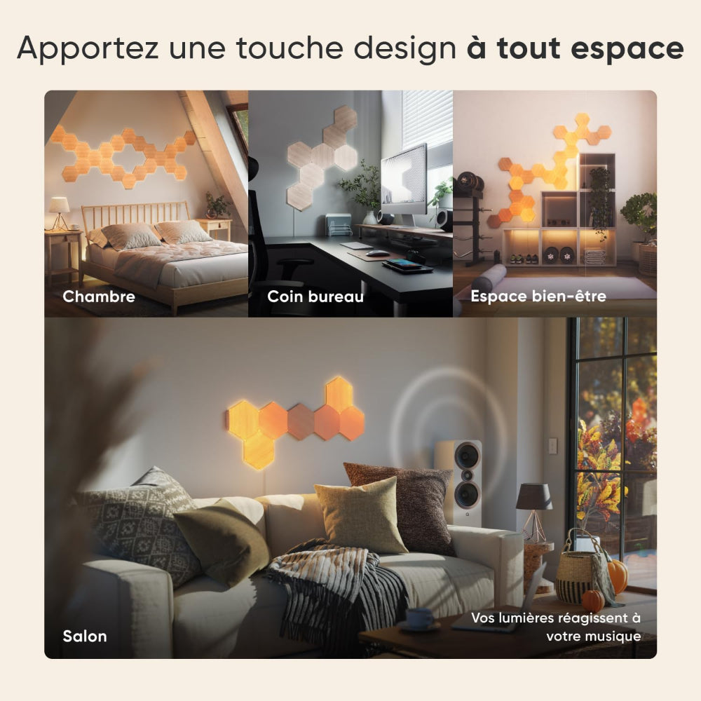 تقدم Nanoleaf Shapes مجموعة جديدة كلياً من الأشكال التي يمكن ربطها ببعضها، مما يوفر إمكانيات تخصيص وتصميم لا حدود لها. تُحوّل ألواح الإضاءة LED المعيارية هذه مساحتك بتجارب متعددة الحواس، مثل التفاعل باللمس، ومزامنة الموسيقى في الوقت الفعلي، وعكس الشاشة، وغيرها. يتيح لك الجمع بين التكنولوجيا الذكية والتصميم الأنيق للغاية إمكانيات لا حصر لها للتصميم واللعب والإبداع. اصنع تناسقاً جميلاً في أي غرفة، أو انطلق في عالم من التجريد، فالخيار لك.