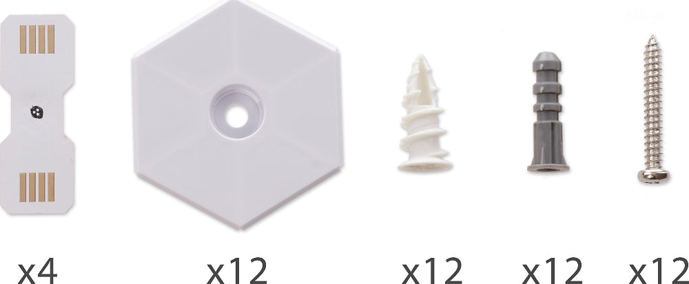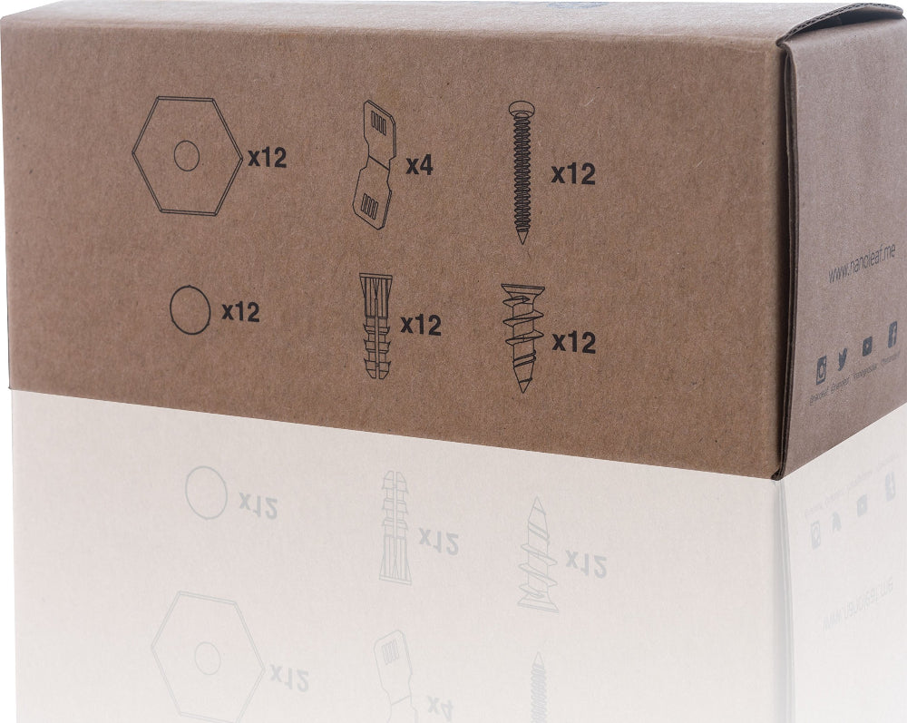 • تتضمن المجموعة 12 حاملًا لولبيًا، و12 مثبتًا جداريًا (للجدران الجصية/الجبسية)، و12 برغيًا فولاذيًا (للجدران الجصية/الجبسية/الخشبية)، و4 وصلات نانوليف فليكس.