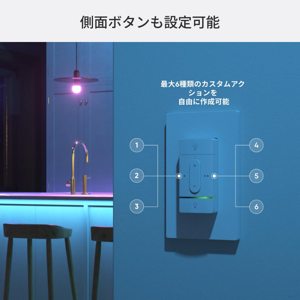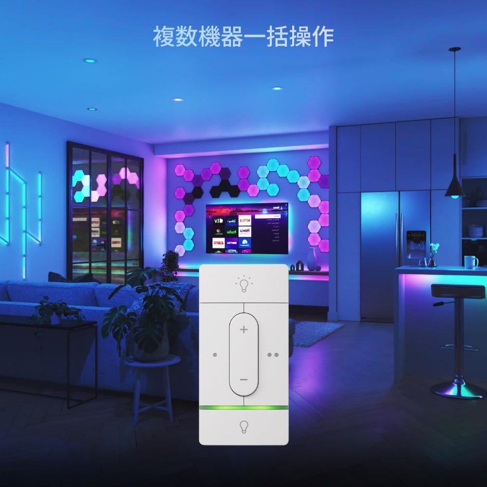 تحكّم بإضاءتك كما تشاء مع مفتاح Sense+ الذكي اللاسلكي المبتكر من Nanoleaf، والذي يُمكنك التحكم به من أي مكان. تتيح لك تقنية Litewave الحصرية التحكم بإضاءات Nanoleaf فورًا دون الحاجة إلى أي توصيلات سلكية! ضع هذه المفاتيح الذكية اللاسلكية في أي مكان تريده، مثل بجانب سريرك أو مكتبك، في المطبخ، غرفة المعيشة، الممر، أو الحمام، لتوفير نقطة تحكم إضافية لإضاءتك الذكية، بالإضافة إلى تطبيق Nanoleaf أو نظام منزلك الذكي.