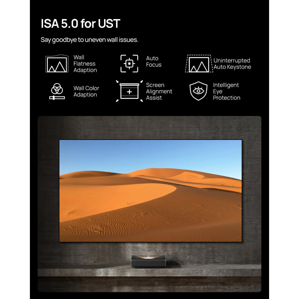 Experience next-level home entertainment with the AURA 2 (New), powered by Google TV with licensed Netflix for instant access to blockbuster movies and trending shows—no setup required. Enjoy a true cinematic upgrade with Dolby Vision and IMAX Enhanced certification, paired with Dolby Atmos and premium harman/kardon speakers that deliver immersive, theater-quality sound and visuals right in your living room. With an impressive 2760 ANSI lumens brightness and a remarkable 1,000,000:1 contrast ratio driven by Dual Light 2.0, every scene comes to life with exceptional clarity, depth, and vibrant color. Setup is effortless, thanks to Advanced Intelligent Screen Adaptation 5.0, which automatically optimizes the image for any environment, ensuring a flawless viewing experience every time. For gamers, ultra-low 20 ms latency and MEMC technology provide ultra-smooth, responsive gameplay, making it the perfect all-in-one entertainment hub for movies, gaming, and more. Designed to complement modern interiors, AURA 2 (New) features an elegant aesthetic and exclusive Art Mode, allowing it to double as a stylish home dأ©cor piece.