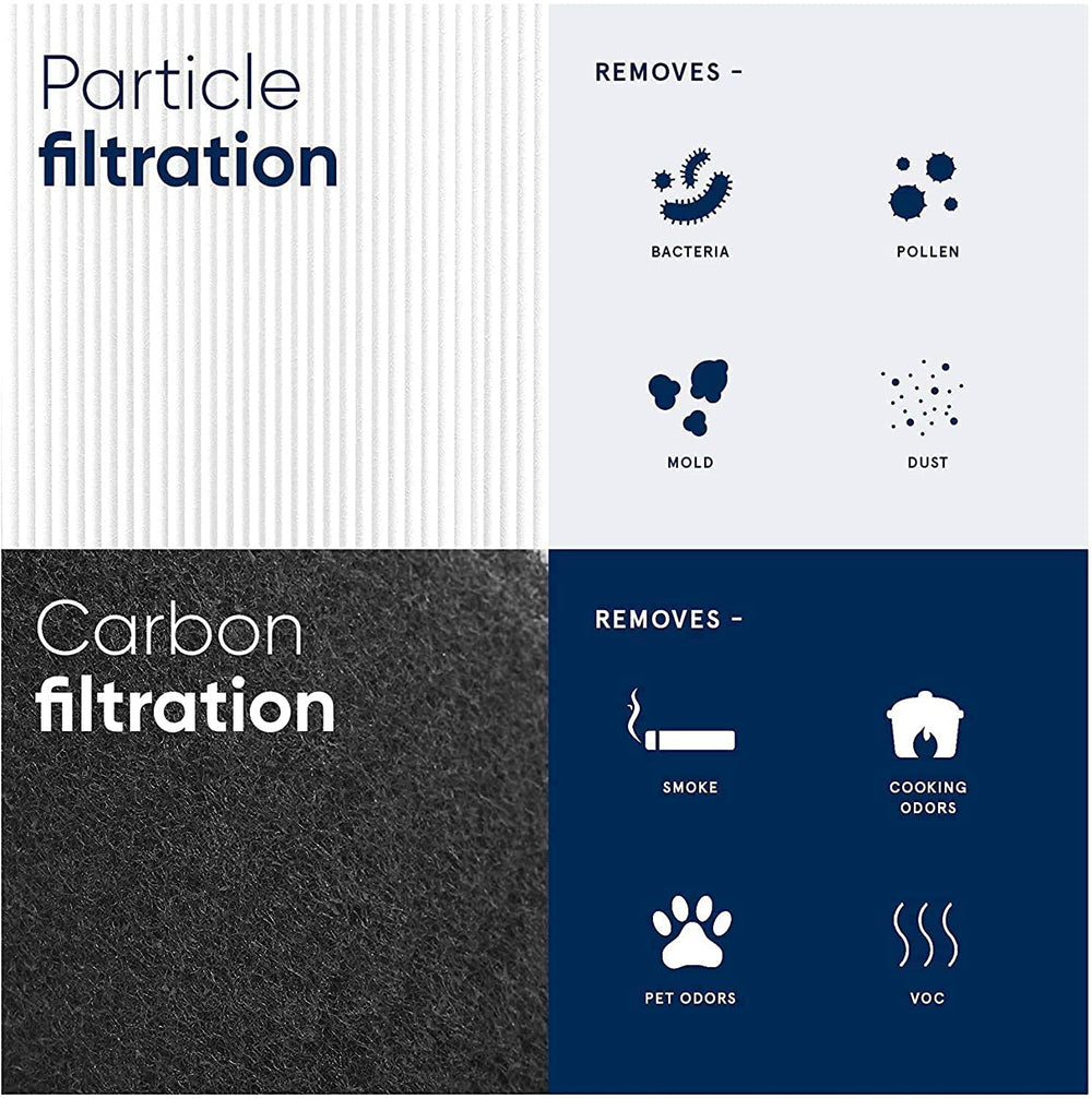 The BlueAir Blue 3410 Particle + Carbon Filter is designed to provide advanced air purification by combining high-efficiency particle filtration with odor and gas removal. This filter features a dual-layer system, including a Particle filter for capturing dust, pollen, pet dander, and other airborne allergens, and an Activated Carbon filter that targets odors, smoke, and volatile organic compounds (VOCs). The filter utilizes BlueAir's HEPASilent™ technology, ensuring high filtration performance with low noise levels, making it ideal for a variety of living spaces. It’s compatible with Blue 3410 model. Easy to replace, Blue Series purifier includes a smart replacement indicator that alerts users when it’s time for a change. It’s a reliable solution for improving indoor air quality by removing both particulate matter and harmful gases.