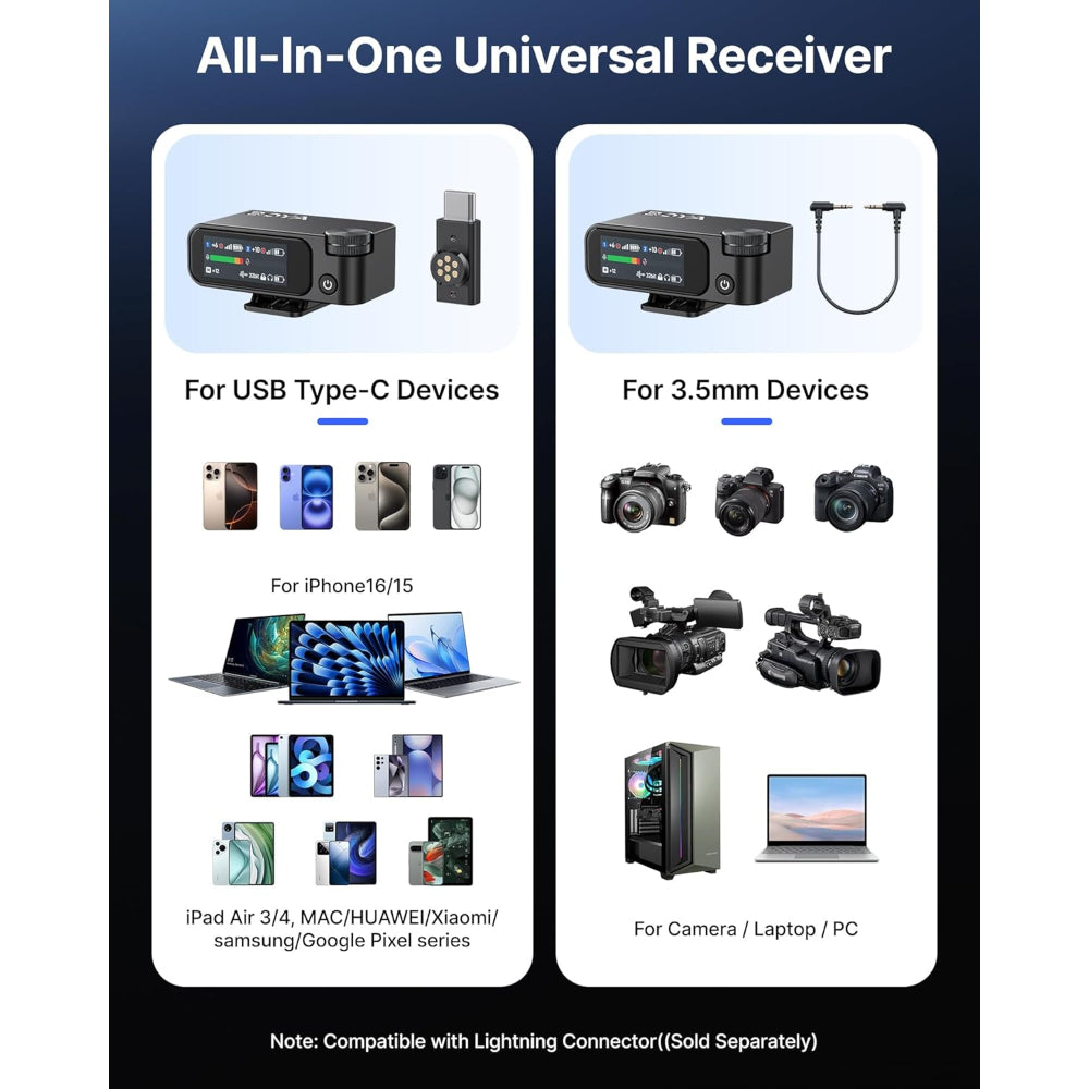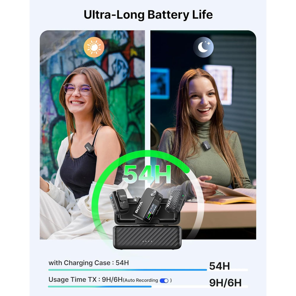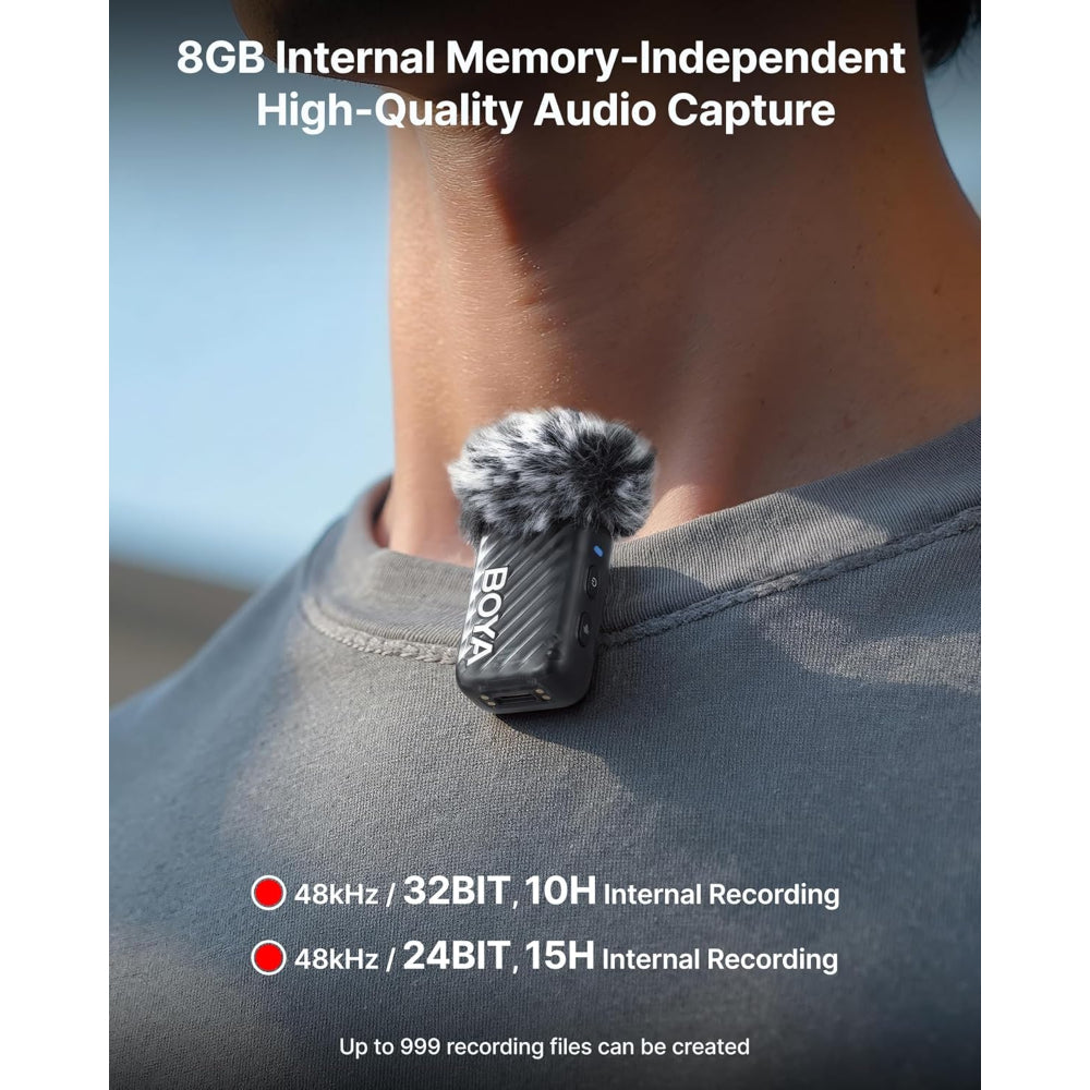 The BOYAMIC 2 is the world’s first AI-powered mini wireless microphone system that brings professional-grade audio and intelligent noise suppression to creators of all levels. Equipped with a built-in AI chip trained on over 700,000 real-world noise samples, it delivers advanced noise cancellation with selectable strong and light modes, helping your voice stand out clearly even in busy environments. With studio-quality 48 kHz/24-bit sound, onboard 32-bit float recording and 8 GB of internal memory, BOYAMIC 2 captures pristine audio with dynamic range and detailed clarity while providing triple protection against clipping. Its expandable design supports up to four receivers and multi-device sync, and versatile connections (USB-C, Lightning, and 3.5 mm TRS) make it ideal for smartphones, cameras, and computers. Compact and powerful with long battery life plus a smart charging case, BOYAMIC 2 is perfect for vlogging, interviews, live streaming, and all-around content creation.