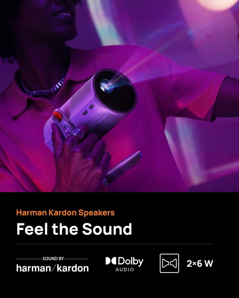 • Immersive Harman Kardon Sound & 4 Magnetic Creative Filters:Enjoy rich, cinematic audio from 12W Harman Kardon speakers, while choosing from four magnetic filters to create the perfect mood—customize your audiovisual experience for every scene.