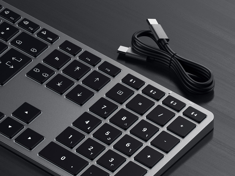 All the features you love in one slim and compact keyboard. Satechi’s Slim X3 Bluetooth Backlit Keyboard is the perfect accessory to your modern desk space, allowing you to work with ease wherever creativity takes you. It features an extended keyboard layout with MacOS function keys, easy-to-use multi-device Bluetooth, adjustable backlit keys, and a rechargeable USB-C port.