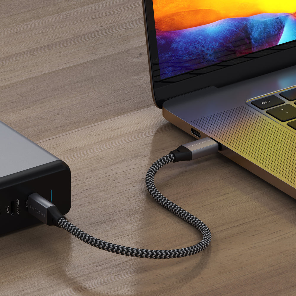 Complete your charging setup with the Satechi USB-C to USB-C Cable, featuring a durable design and shorter length to make on-the-go charging even more convenient.